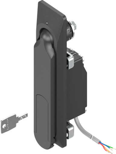 Zwenkgreep 1154 met elektromechanisch slot en noodopening sleutelnummer EK 333, Zamak zwart gepoedercoat; 1154-U6